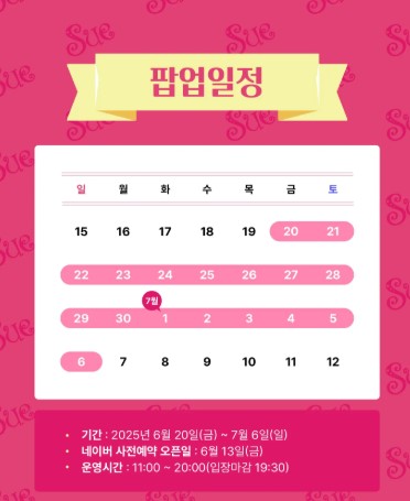 월~일 11:00~20:00에 특별 팝업스토어를 엽니다.
